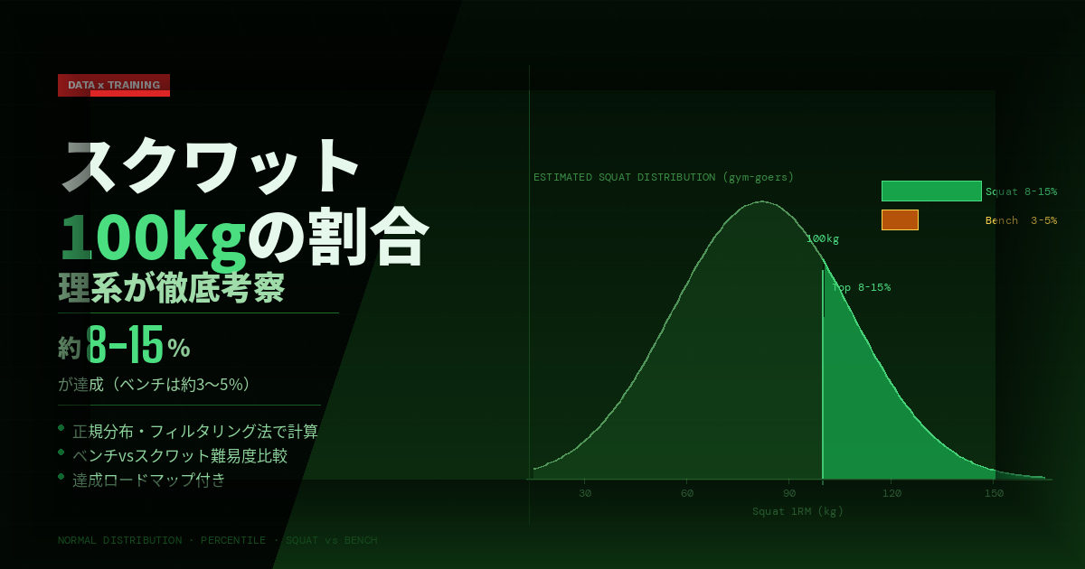 データと計算を通じて、スクワット100kgの希少性と意味を検証しました。