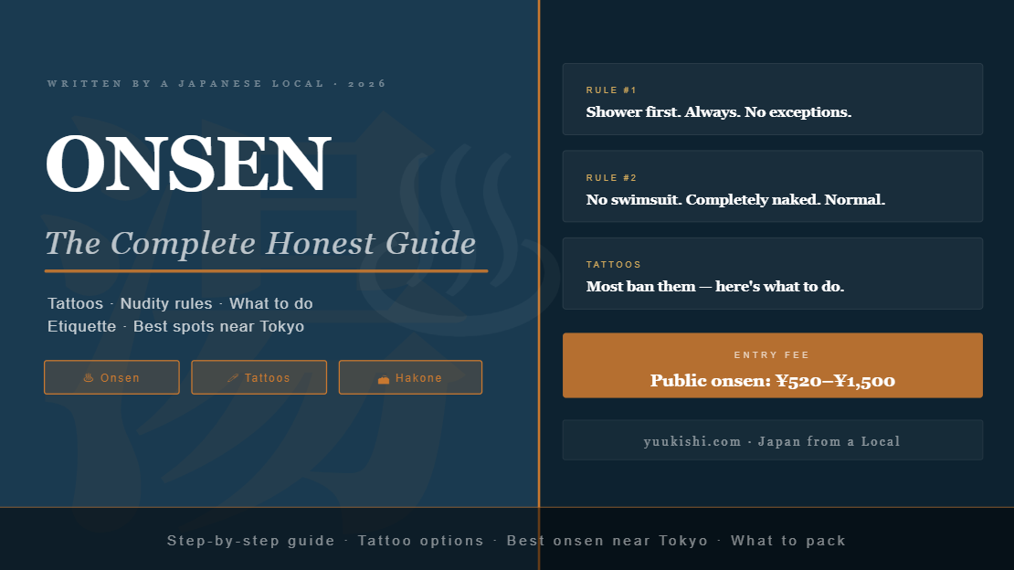 Most traditional onsen still ban tattoos. This isn’t arbitrary — it comes from a historical association between tattoos and organised crime (yakuza). The rule is fading, especially in tourist areas, but it hasn’t disappeared. Attitude varies hugely by establishment and region.